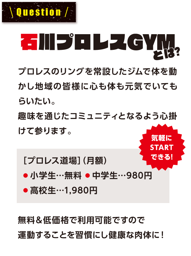 - ※小学生はジムの使用時間18時まで。中学生以下は18時以降は保護者同伴、もしくは迎えが必要。